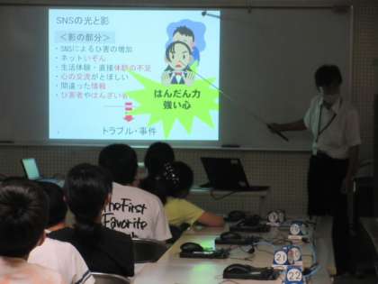 情報モラル講座では、インターネットに潜む危険について分かりやすく丁寧に教えて頂きました。「判断力」「強い心」の大切さを学び、スマートフォンやパソコン等を「スマート=賢く」使う意識をもつことができました。