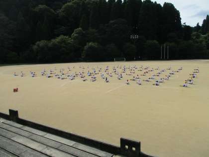 これまでは体育館で、演技の振り付けを覚えてそろえる練習を中心に行っていましたが、今日は初めてグラウンドで入場から隊形移動も含めて通して練習しました。グラウンドの広さにも負けない力強いパフォーマンスができるように、新たな課題や目標が見つかった1時間でした。