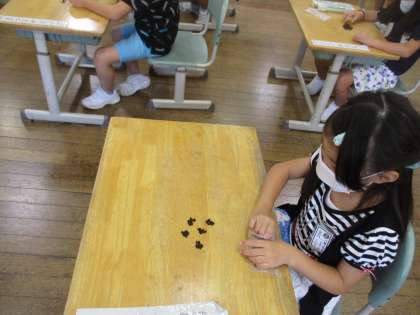 算数科の学習を生かして、10のまとまりを作りながら数えました。