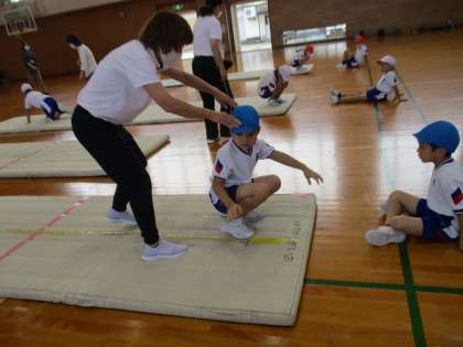 最後に、前転と後転を練習して、マット運動の学習が終了しました。しばらくは小運動会の練習が続きますが、今日教わったことを忘れないように、また学習に生かしていけたらと思います。指導員の先生方、ありがとうございました。