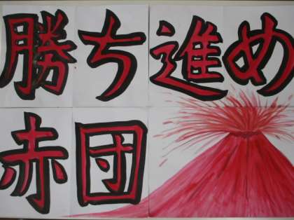 以前より描いていた団のスローガンが完成しました。どんなふうに文字を見せようか、それぞれにレイアウトを工夫し、丁寧に描いていました。