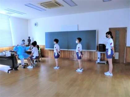 眼科検診を実施しました。換気や手洗い、マスクの着用、ソーシャルディスタンス等に配慮しながら行いました。健康診断の新しい様式にも、少しずつ慣れてきた子供たち。心を込めてお辞儀挨拶をする姿も見られます。