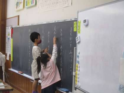 黒板に考えた答えを書く活動では、みんなやる気満々でした。