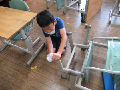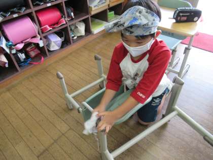 今週のキラキラタイムでは机の脚をきれいに掃除し始めた子がいました。
