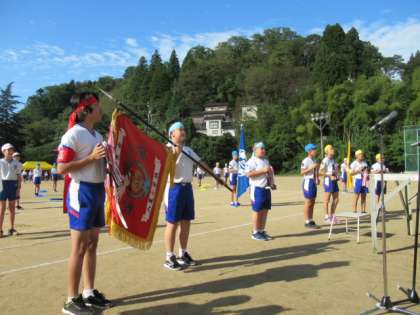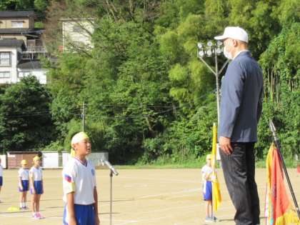 秋晴れの中、小運動会の開会式が行われました。
