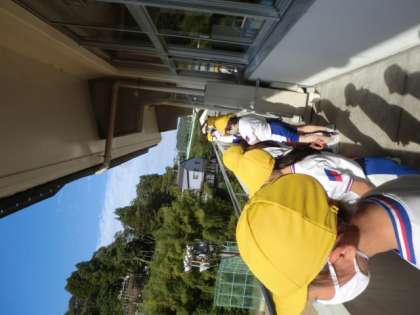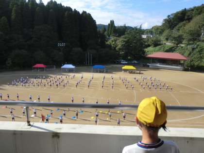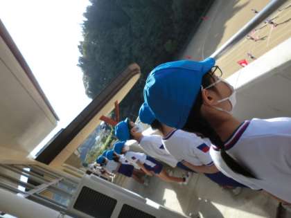 例年と違う参加の仕方でしたが、4年生はベランダから立派な態度で開会式に臨んでいました。