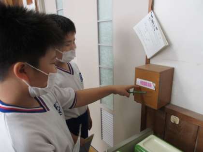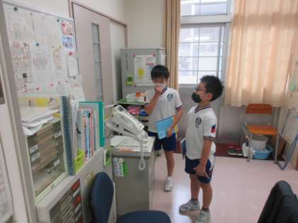 前回の授業で、垂直と平行の定義と特徴を学習しました。そこで、今日は学校内のどのようなところに垂直と平行があるかを捜索しました。