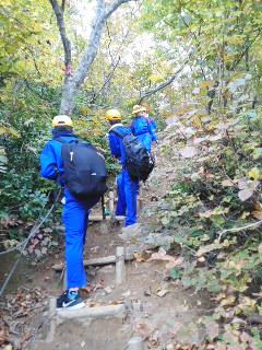 「大丈夫?」と、仲間に声をかけながら登っています。