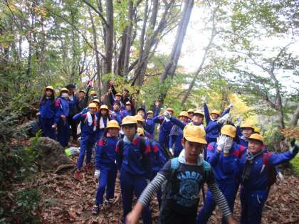 険しい山道や岩場を登りきり、ほっと一息ついています。 まだまだ元気はあり余っていますね。