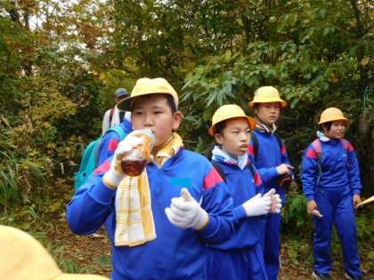 眺めがよく、気持ちのいい風が吹いていました。紅葉も美しく、どんぐりを拾いながら登っている子もいました。