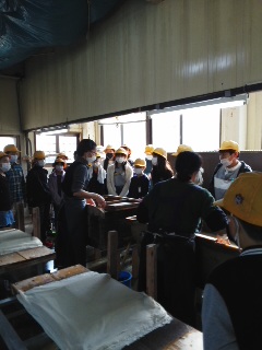 卒業証書の紙を自分の手で作ります。桂樹舎の方から説明を聞いています。