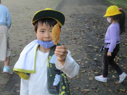 学校のグラウンド周辺を散歩して、秋を見付けてきました。トンボ、赤や黄色に色づいた葉っぱ、すすき、くりなど、たくさんの秋を見付けることができました。