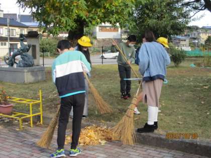 この時期になると、竜の子ロードには、紅葉した葉がたくさん落ちてきます。毎朝、環境委員会の子供たちが中心になって、落ち葉はきをしてくれています。ありがたく、とても頼もしい姿です。