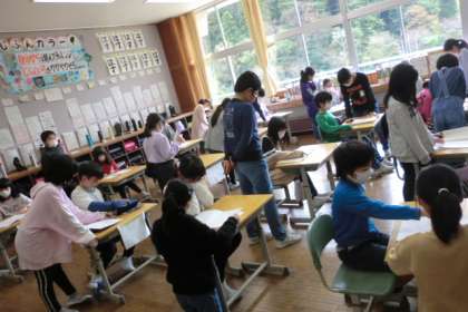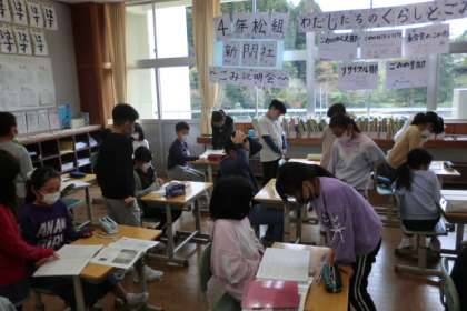 今日は、「学年自学コンテスト」を行いました。3年生の3学期に行って以来、久しぶりに見合う仲間の自学ノートからは、たくさんのよさを見つけたようです。
