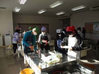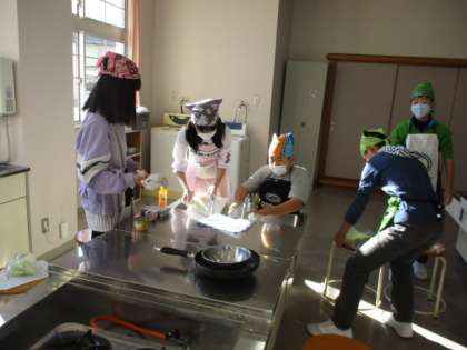 今日は、松組が調理実習を行いました。換気に気を付け、しっかり手洗いをし、道具やテーブルを清潔にしてから調理を始めます。友達と声をかけ合いながら、てきぱきと準備を進めていました。