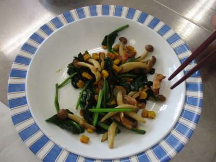 持ってきた野菜も味付けもそれぞれの班で違うので、出来上がりもさまざまです。素材のおいしさや組み合わせのよさが感じられるおかずばかりでした。火加減も上手で、野菜のしゃきしゃきした歯ごたえがおいしかったです。