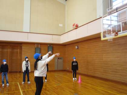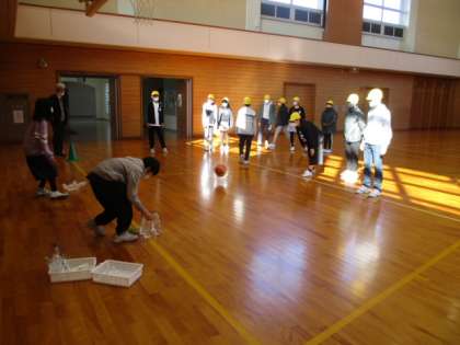 運動委員会の企画で、秋のスポーツウォークラリーが開催されています。人数や並び方、種目など、コロナウイルス感染防止を考えながら、どんな活動が楽しめるか委員会で話し合い、工夫して計画されたものでした。色団ごとにバスケットボールシュートやストラックアウト等を楽しみました。