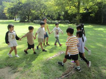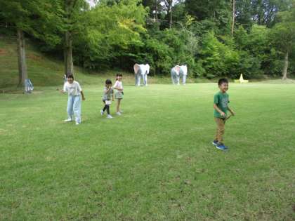 午後からは、ピクニック広場でグループごとに自分たちで決めた遊びやアスレチックを楽しみました。今回の校外学習では、1年生と2年生が互いに声をかけ合って助け合ったり、一緒に遊びを楽しんで仲を深め合ったりする姿がたくさん見られました。
