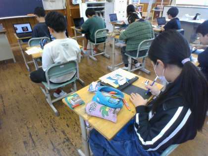 1・2時間目に図工をしました。色画用紙をカッターで切って、切り絵を作りました。丁寧に切ったり、貼り間違えがないように仕上がりを確認したりしながら作業しました。