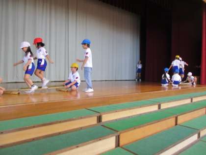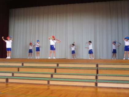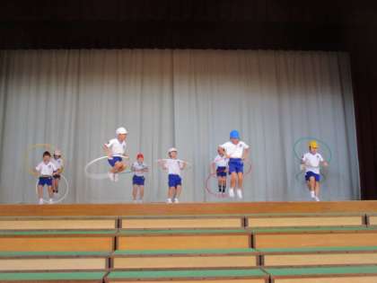 学習発表会に向けて、ダンスの練習をしましふた。フラフープチーム、バンブーチーム、なわとびチームの三つに分かれて踊ります。今日は、全体の流れを確かめながら練習に取り組みました。本番までの練習時間を大切に、このまま元気いっぱいに突き進みたいと思います。