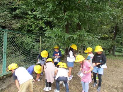 生活科の学習では「あきちょうさたい」として、秋見つけをしました。9月に調査したときは、まだセミが鳴いていて「まだ夏みたいだね」と話していた子供たちですが、昨日外に出てみると、どんぐりや色づいた葉っぱなど、秋をたくさん見つけることができました。