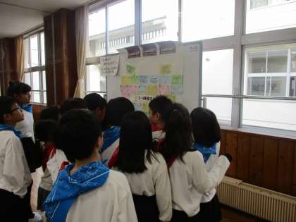 発表を前に、校内発表会で他の学年からもらったメッセージを見返し、さらに気持ちを高めていました。