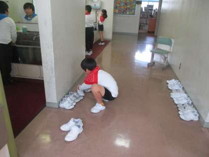 また、トイレにも行きました。きれいにズックを並べてくれている子供もいました。