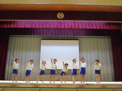 5年生の学習発表会のテーマは「みんなでキメル」です。