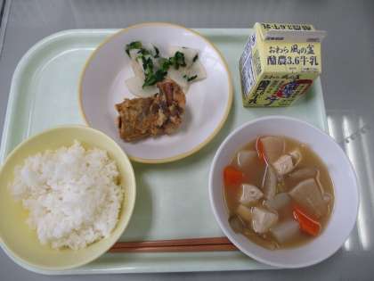 今日は、「きときとランチ」でした。「きときと」とは、富山県の方言で、「新鮮で、いきいきとした様子」を表します。富山県産の野菜を多く使用し、富山らしさを感じることができる献立になっています。富山県産の食材は、富富富のお米、かぶ、ねぎ、えごまの葉でした。新鮮な野菜を、おいしくいただきました。
