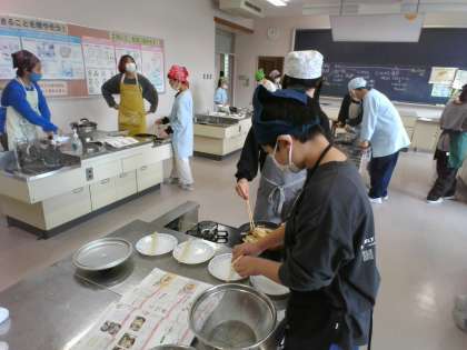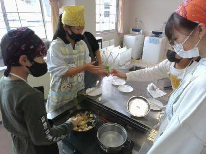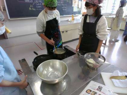 洗い物を少なくしたり、水の出し過ぎに気を付けたりしながら、環境のことを考えて調理しました。手際よく、調理を進めることができました。