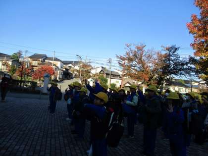 5年生の宿泊学習の目当ては「進んで行動・やりきる」です。代表の児童がこの目当てを意識して行動しようと話をしました。