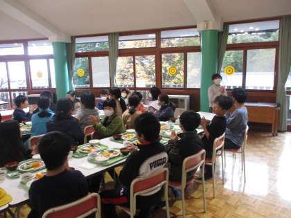 朝食では、誕生日の友達をサプライズでお祝いしました。