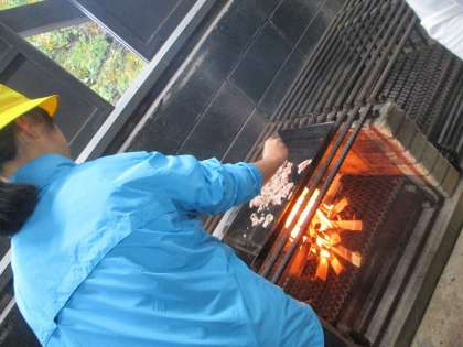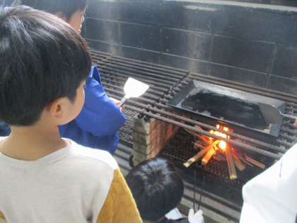 かまどチームは、かまどに火を起こして火力を保つのに一生懸命にがんばりました。