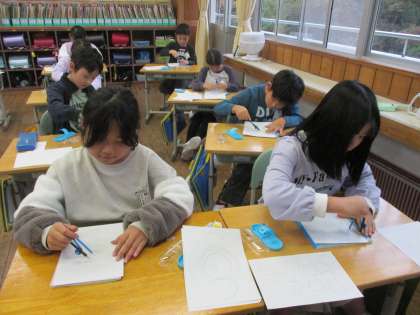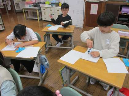 松組は昨日から「円」の学習に入り、コンパスを使ってきれいな円を描く練習を始めました。手首を使って描くのがこつです。始めはなかなかうまくできなくても、諦めないで練習し続けてほしいと思います。