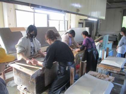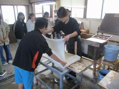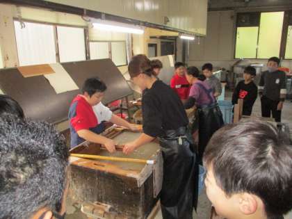 自分ですいた紙が卒業証書となることを思いながら、みんな真剣に紙すきに取り組みました。紙は1月に仕上がる予定です。