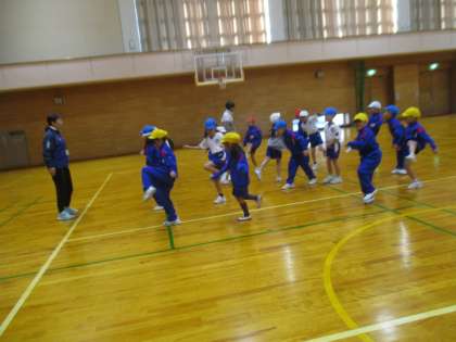 この日は、富山市スポーツ協会からスポーツ指導員の方に来ていただいて、体育の学習を行いました。準備運動ののち、マットを使った運動、鉄棒を使った運動を行いました。