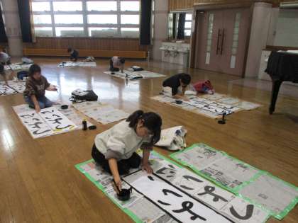 今日から書き初めの練習を始めました。習字紙も、筆も、新聞マットも、大きくて扱いが大変そうでしたが、精一杯がんばっていました。