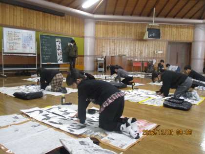 書き初めの練習を竹組も始めました。慣れない大きな太筆に四苦八苦しながらも、きれいな字を書こうと精一杯頑張っていました。