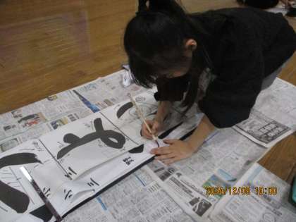 書き初めの練習を竹組も始めました。慣れない大きな太筆に四苦八苦しながらも、きれいな字を書こうと精一杯頑張っていました。