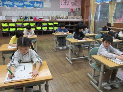 「集中して書くと疲れたよ」「お手本と同じように書くのは難しいな」と話していました。