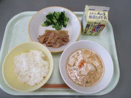 今日は、豚肉のジャンローの紹介をしました。ジャンローとは、しょう油で煮た料理のことで、中華風の煮豚です。今日のジャンローは、玉ねぎと一緒に砂糖、しょうゆ、酒を合わせて調味料で煮ました。白いごはんによく合いました。