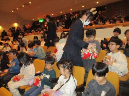 最後には、お兄さんお姉さんからプレゼントをもらい、大満足で学校に戻りました。