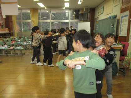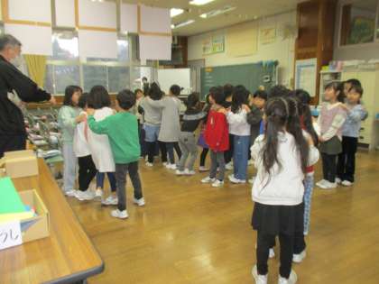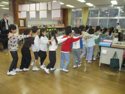 この日の音楽では、子供たちのやりたい音楽遊び「じゃんけん列車」から始まりました。