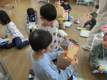 他にも、クリスマスもうじゅうがりとクリスマスビンゴの出し物がありました。もうじゅうがりは、自分たちで歌詞をアレンジして楽しみました。クリスマスビンゴの景品は、子供たちの手作りクリスマスカードです。