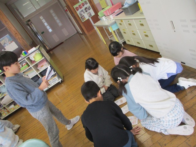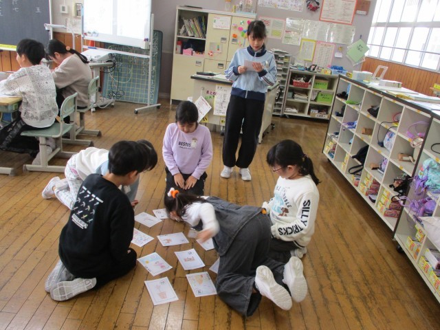 国語で「音訓かるた」を作りました。音読みと訓読みを組み合わせて、読みやすい文にしてかるたを作りました。作った後は、みんなでかるたをして楽しみました。