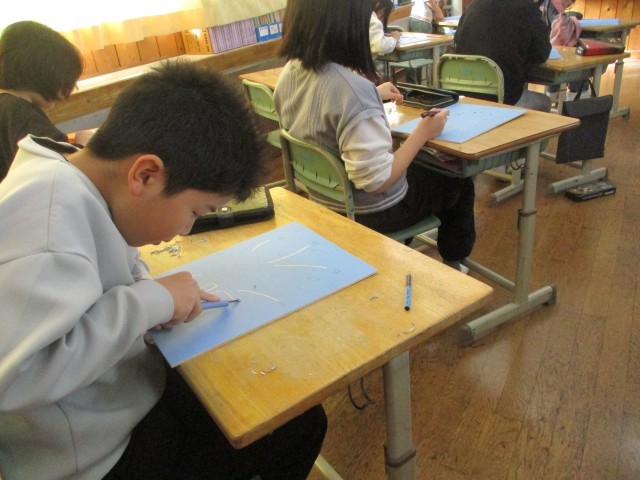 まずは彫る学習です。約一年ぶりに彫刻刀を使用した子供たちは、最初はドキドキしていた様子でしたが、少しずつ感覚を思い出していました。版を刷る学習が楽しみです。