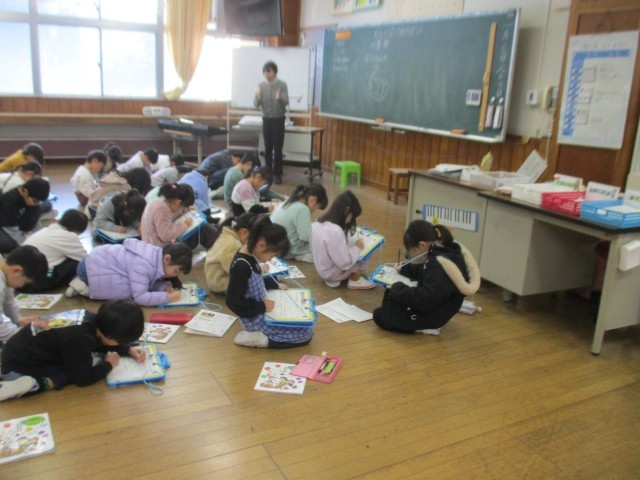歌を歌いながら指を動かすことで絵が描けることに、子供たちはとても驚いている様子でした。