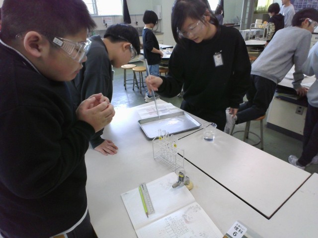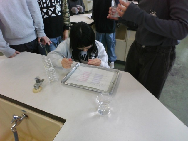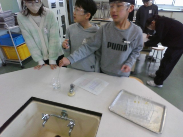 水溶液には、酸性・中性・アルカリ性の三つの性質があることを知りました。五つの水溶液の性質をリトマス紙を用いて調べました。