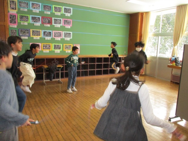 朝3年生が縄跳びの練習をしていると、5年生がやって来て、2重跳び対決をしていました。5年生として下級生と関わろうと考えてきてくれたようでした。頼もしい5年生です!!