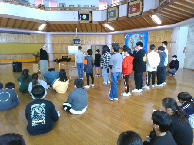 今日の5時間目は合唱練習をしました。黒田先生から、歌の盛り上がりや気持ちのつくり方を教えていただきました。